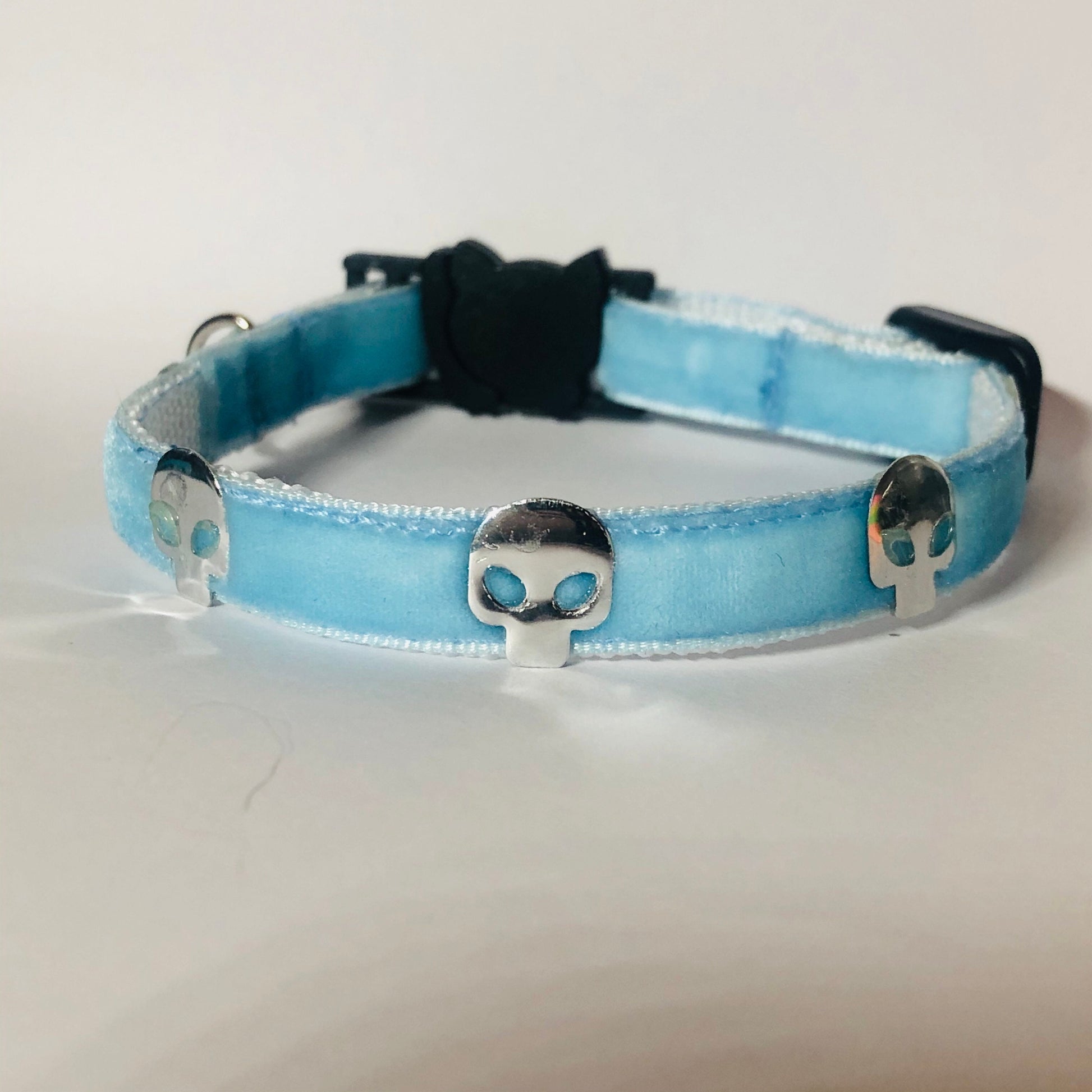 Cat Collar - Baby Blue Velvet Goth Kitty Safety Collar with Bell